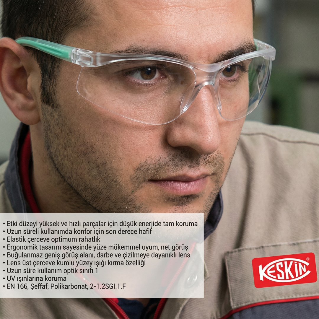 • Etki düzeyi yüksek ve hızlı parçalar için düşük enerjide tam koruma; uzun süreli kullanımda konfor için son derece hafif • Ergonomik tasarım sayesinde yüze mükemmel uyum, net görüş; Buğulanmaz geniş görüş alanı, darbe ve çizilmeye dayanıklı lens • Lens üst çerceve kumlu yüzey ışığı kırma özelliği ; Uzun süre kullanım optik sınıfı 1